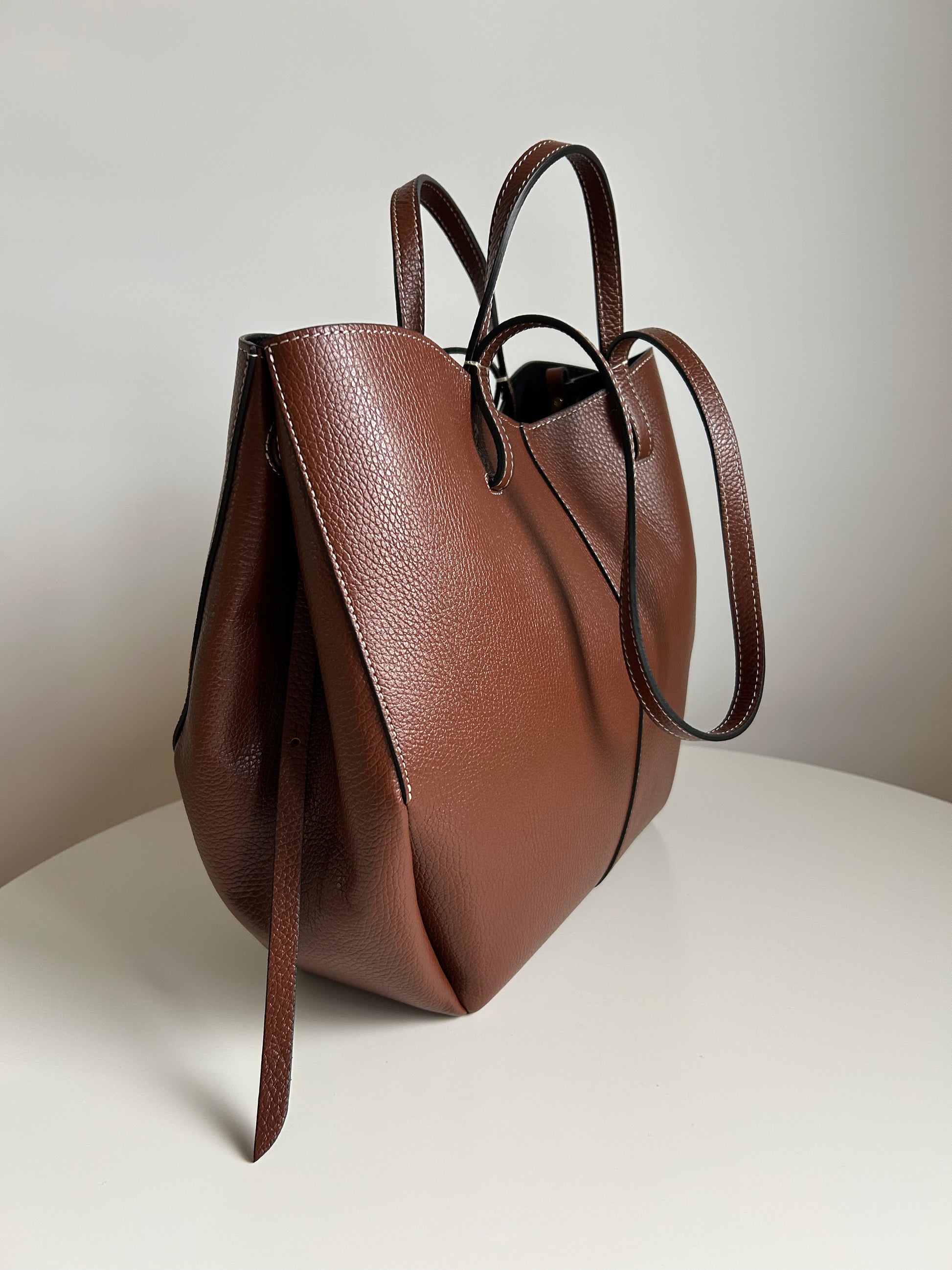Borsa a doppio manico super spaziosa e pratica, realizzata in vera pelle, made in Italy